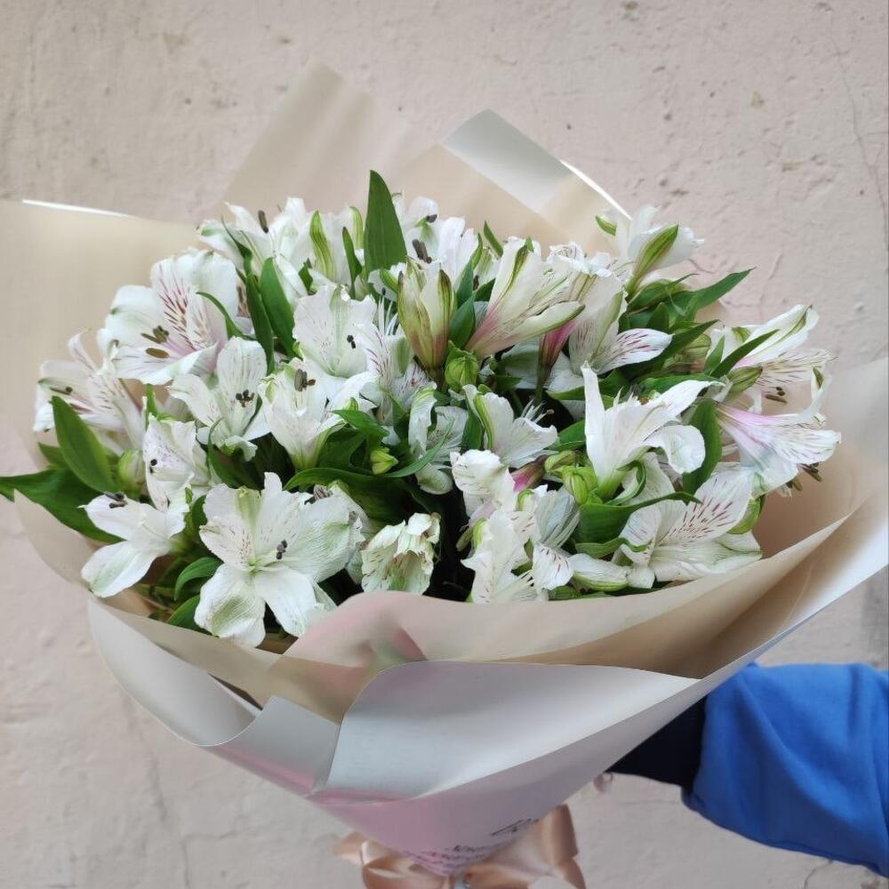 Альстромерия – 15 шт.Пленка матовая – 1 шт.Лента атласная – 1 шт.