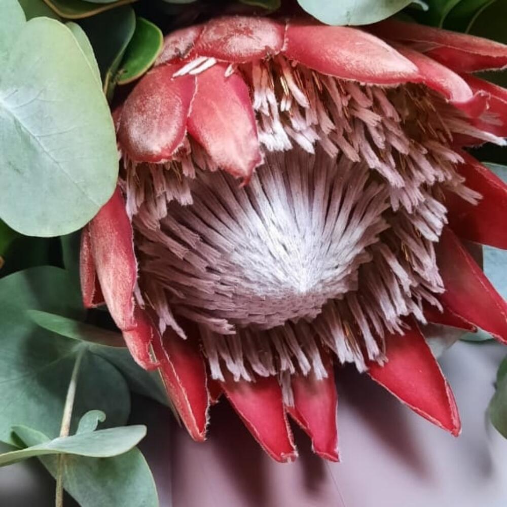 Протея – 1 шт.Эвкалипт – 1 шт.Лента атласная – 1 шт.Упаковка дизайнерская – 2 шт.