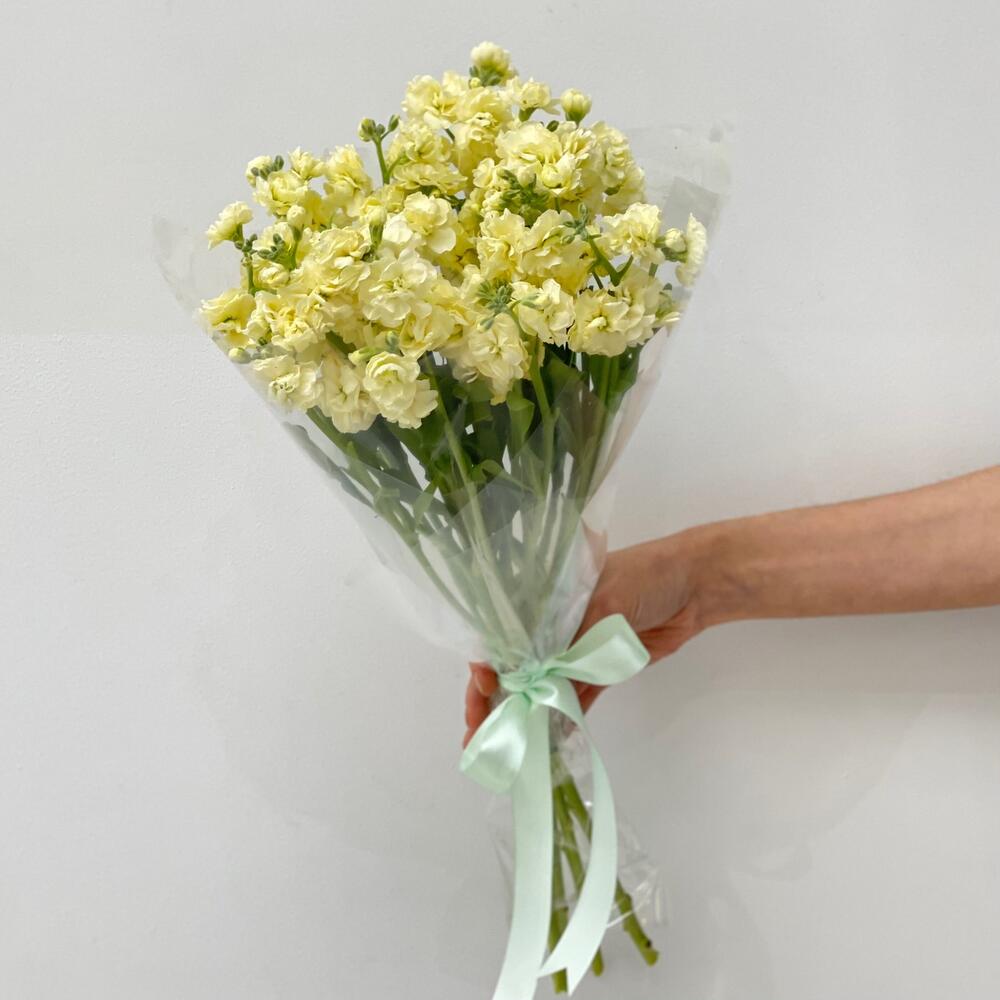 Маттиола – 5 шт.Пленка – 1 шт.Лента атласная – 1 шт.