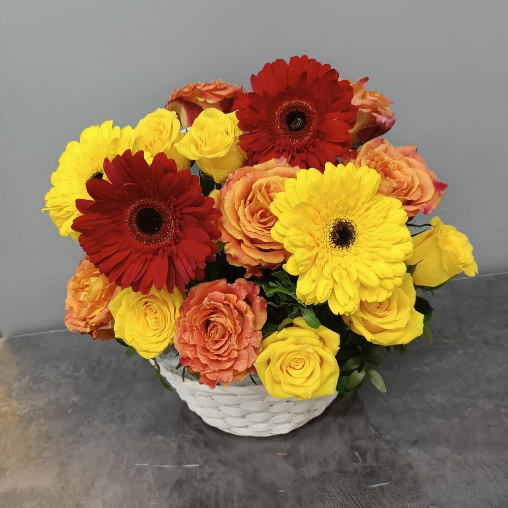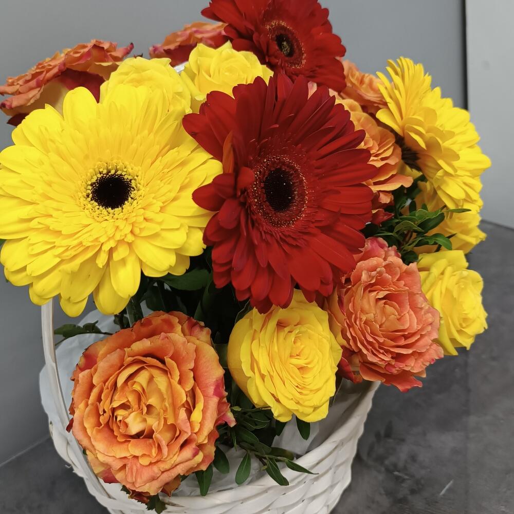 Герберы, Кустовые розы, Пионовидные розы, Розы