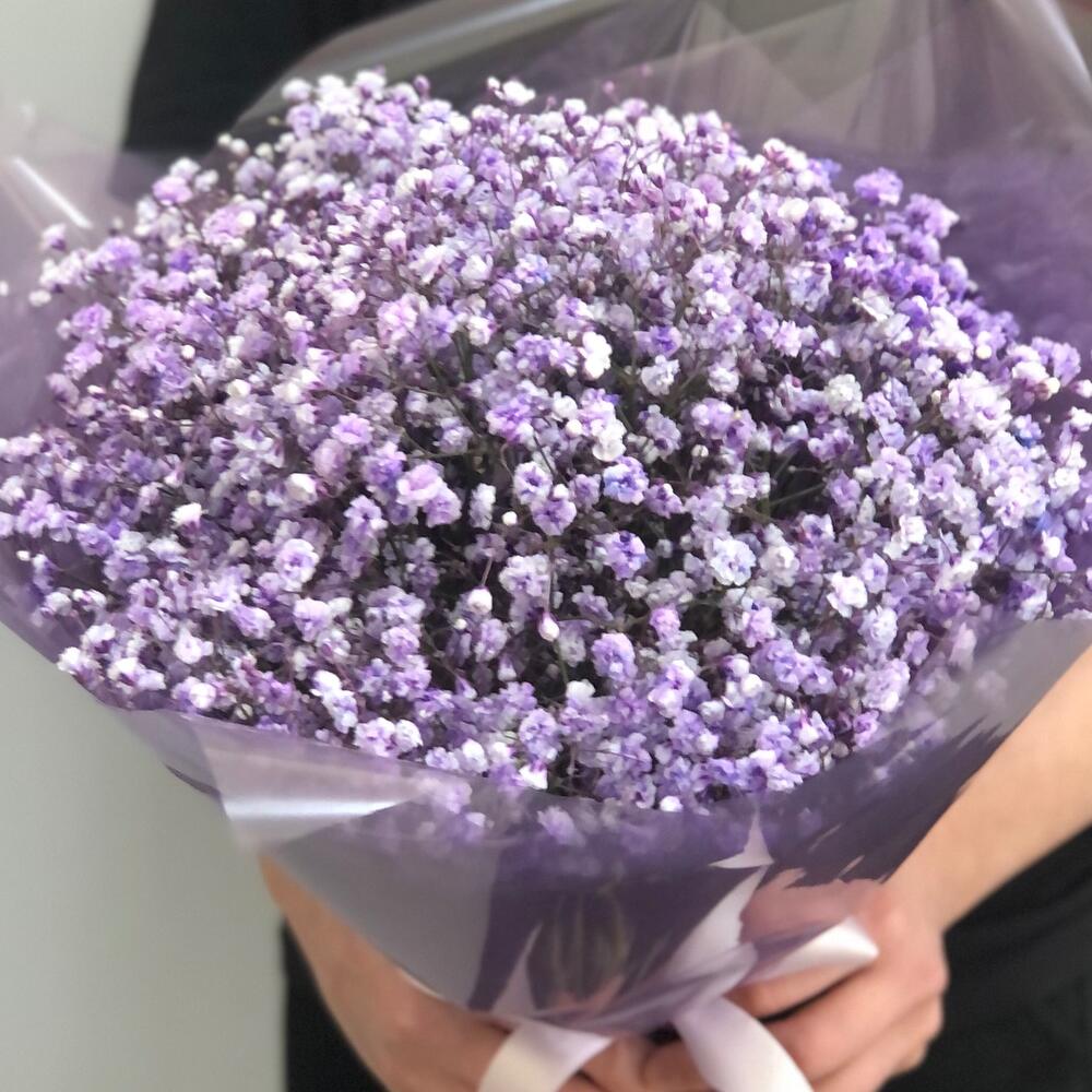 Гипсофила – 9 шт.Упаковка дизайнерская – 1 шт.Лента атласная – 1 шт.