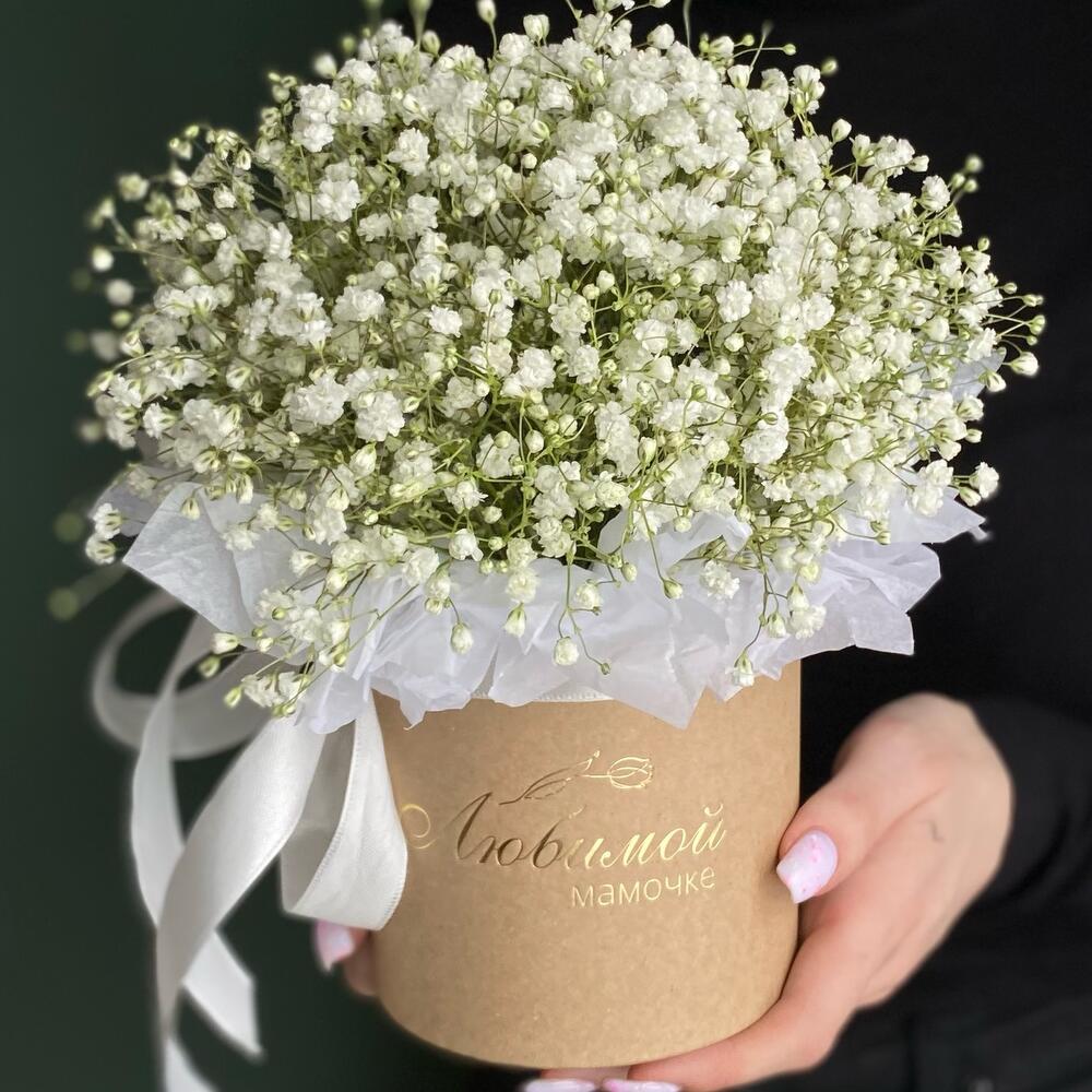 Гипсофила белая в коробке для мамы