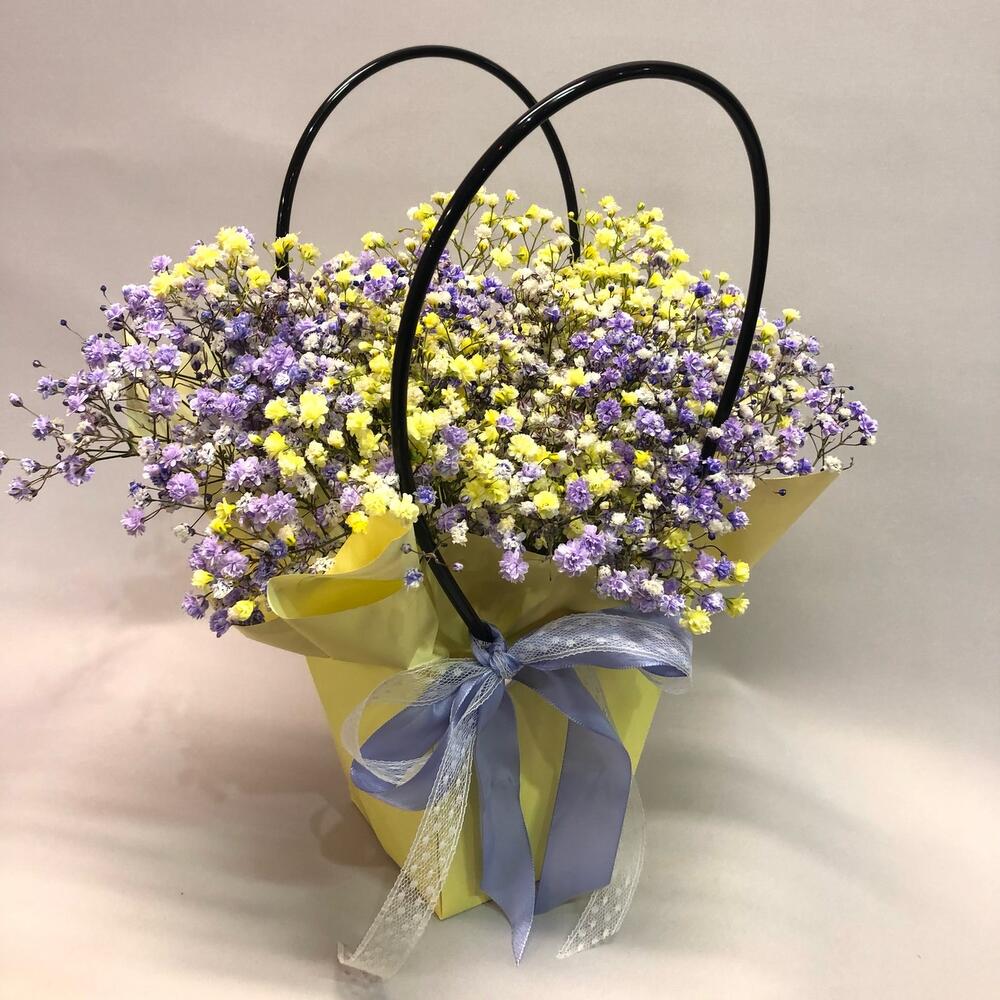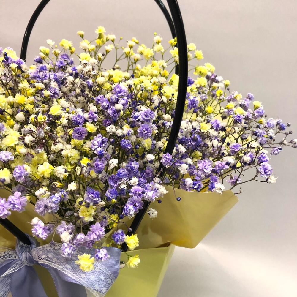 «Лавандовое созвездие» Букет из розы, гвоздики, статица и хлопка