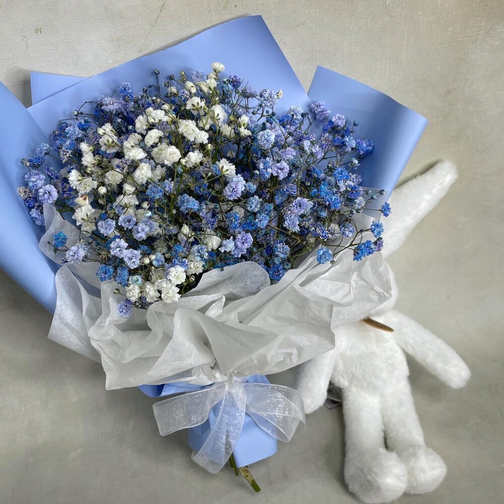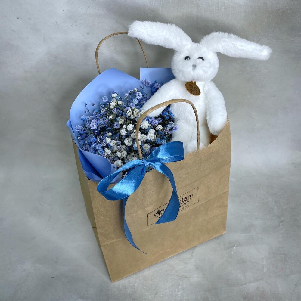 Гипсофила – 3 шт.Упаковка – 1 шт.игрушка зайчонок lapkin – 1 шт.Пакет крафт – 1 шт.
