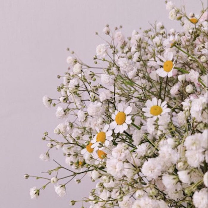 Гипсофила – 7 шт.Ромашка кустовая – 7 шт.Шляпная коробка – 1 шт.Тишью – 1 шт.