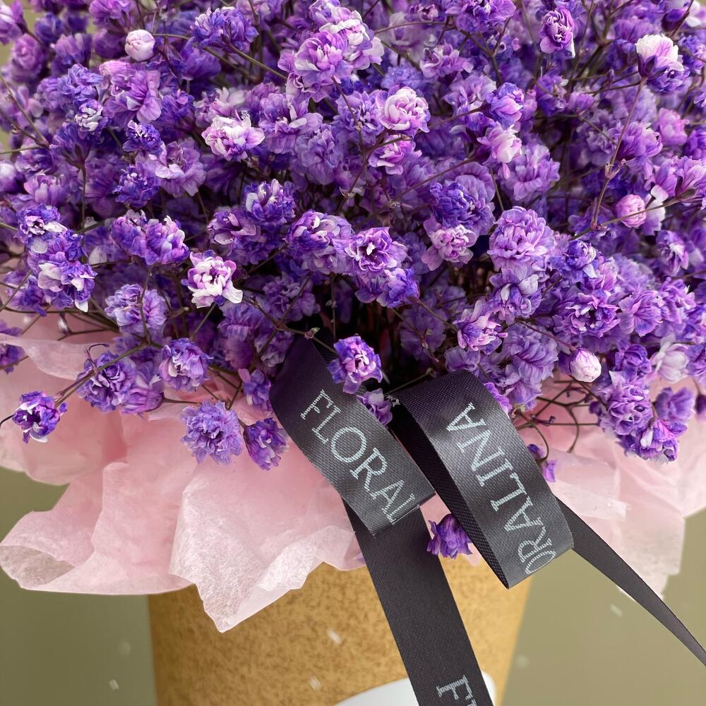 «Лавандовое созвездие» Букет из розы, гвоздики, статица и хлопка