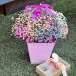 Гипсофила – 7 шт. Лента – 1 шт. Сумочка – 1 шт. Оазис флористический – 1 шт.