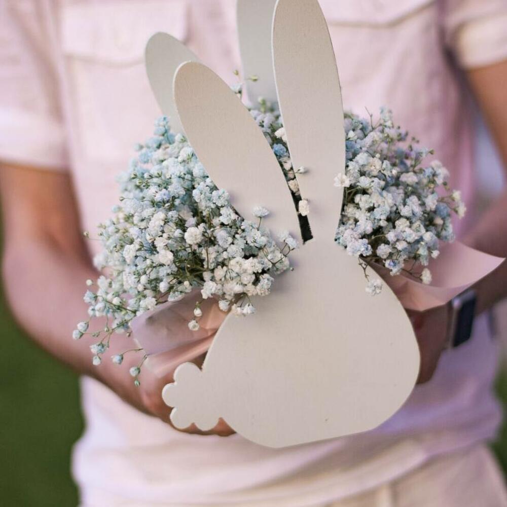 ящик зайка – 1 шт.Гипсофила голубая – 1 шт.