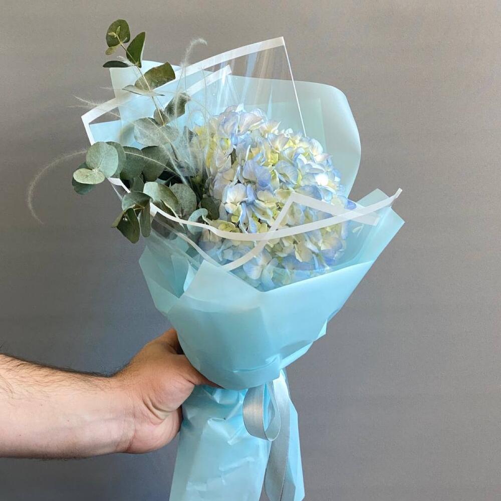 Гортензия – 1 шт.Эвкалипт – 1 шт.Упаковка дизайнерская – 1 шт.Стифа – 1 шт.памятка по уходу и средство для продления жизни цветов – 1 шт.