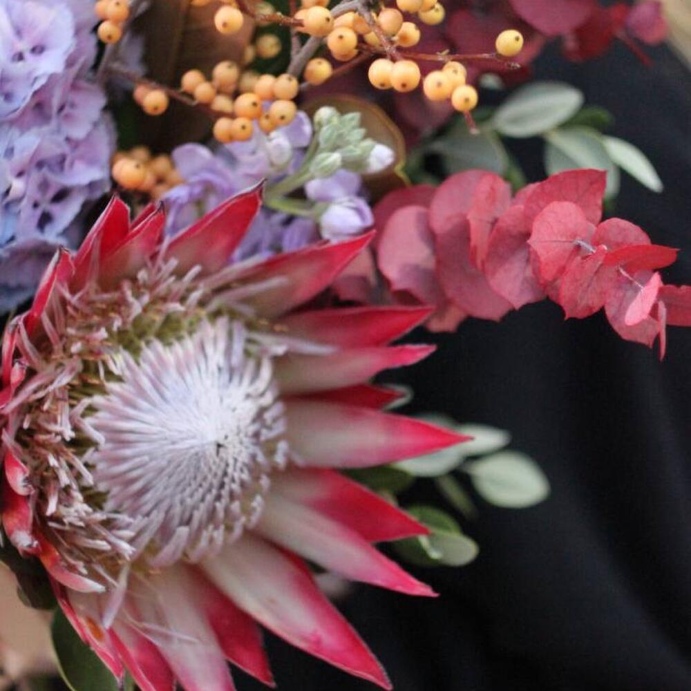 Осенний букет с протеей и ягодами