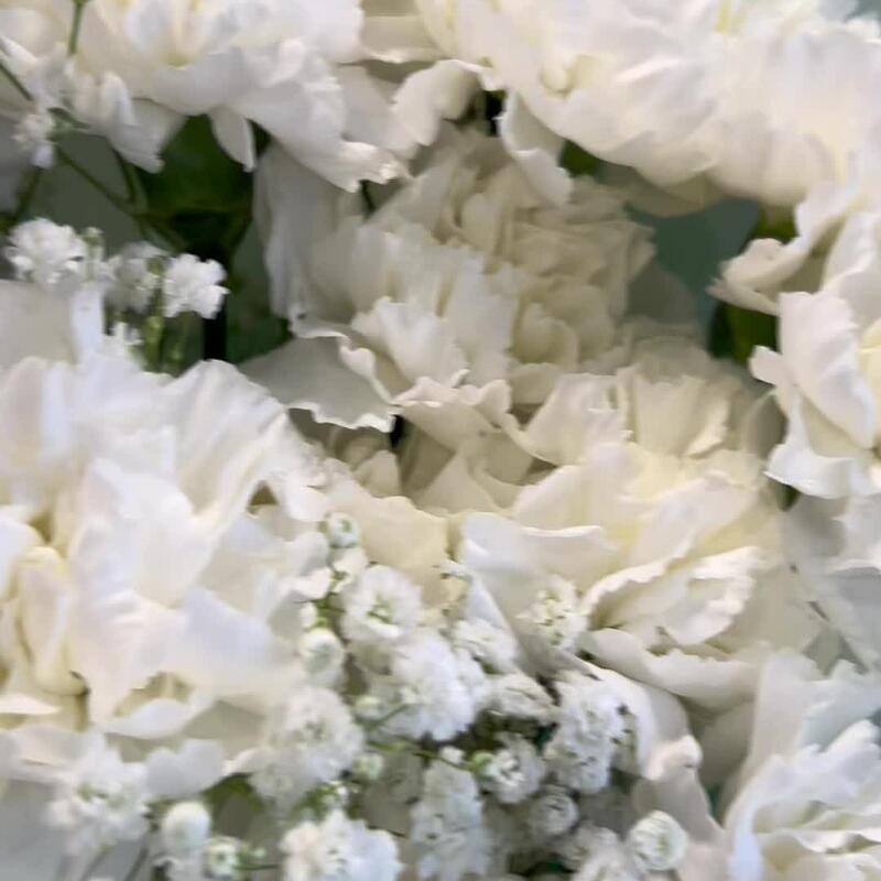 Букет из белых стойких сортовых диантусов и белых гипсофил в упаковке