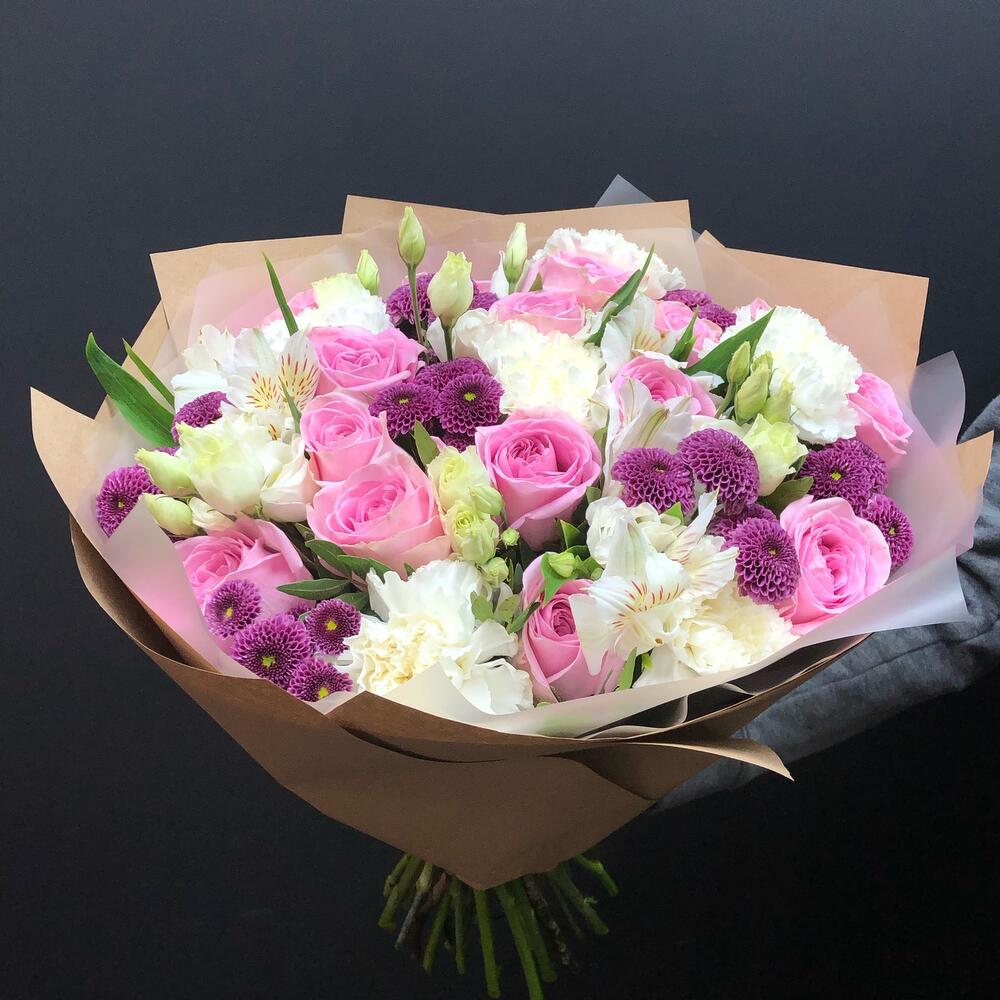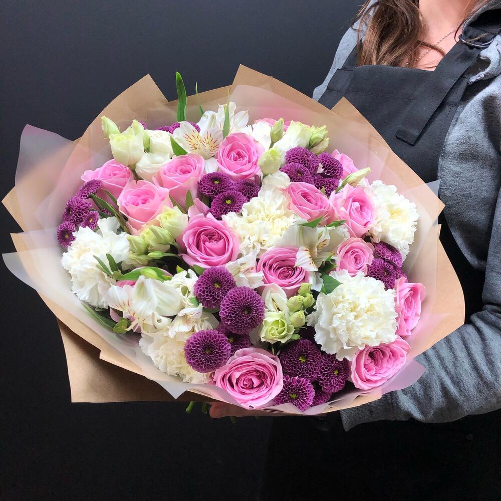 Гвоздики, Кустовые розы, Лизиантусы, Пионовидные розы, Розы
