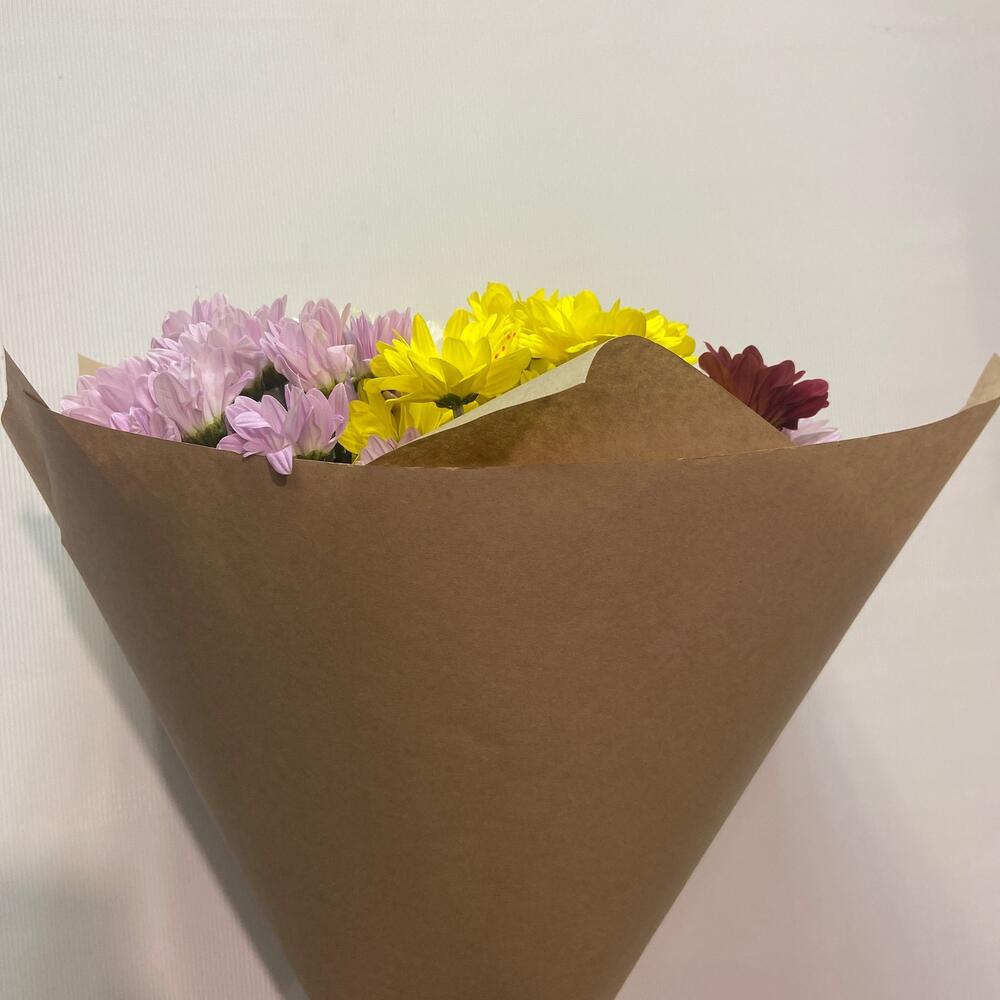 Хризантема кустовая – 7 шт.Упаковка крафт – 1 шт.Лента – 1 шт.