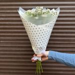 Букет из ромашек и гипсофила в крафт