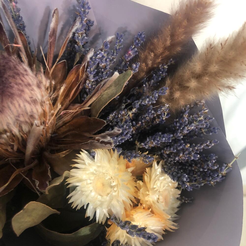 Протея – 1 шт.стелла – 2 шт.Лаванда (сухоцвет) – 1 шт.Гелихризум – 1 шт.Тростник – 2 шт.