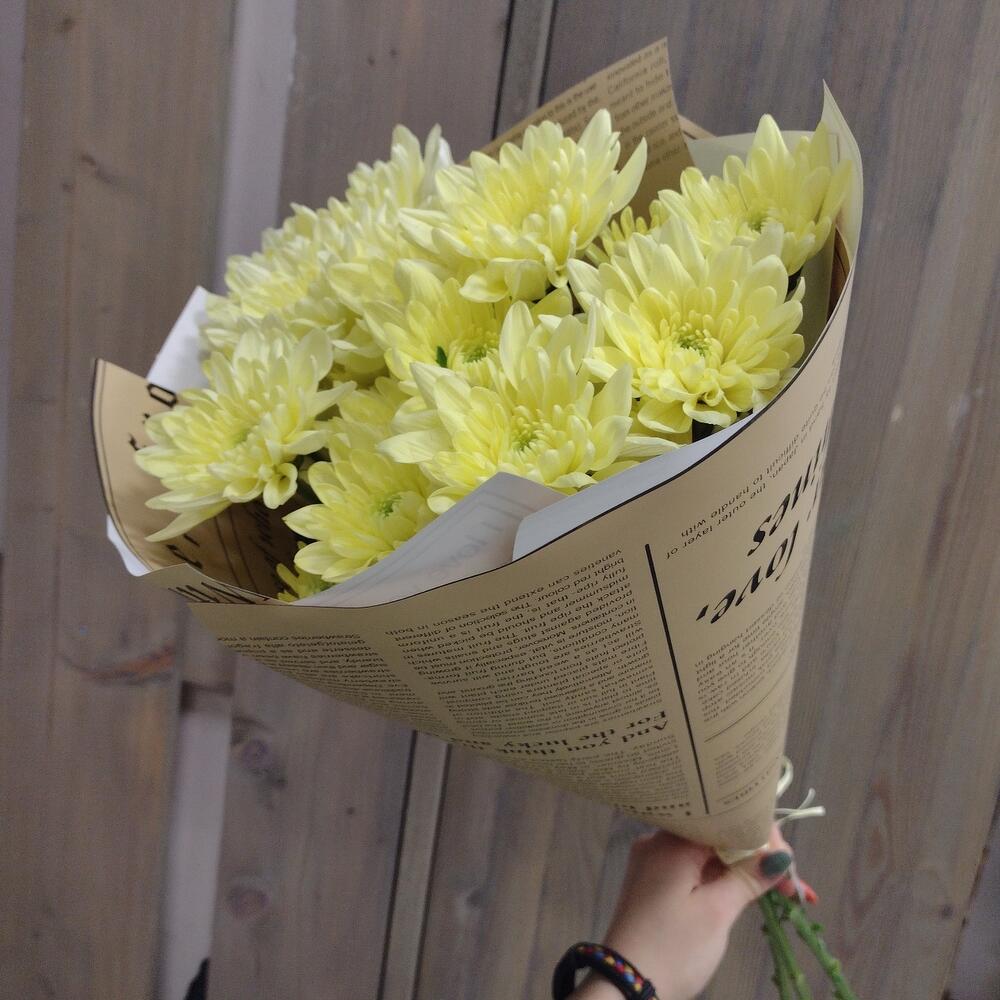 Хризантема кустовая – 3 шт.Дизайнерская упаковка – 1 шт.