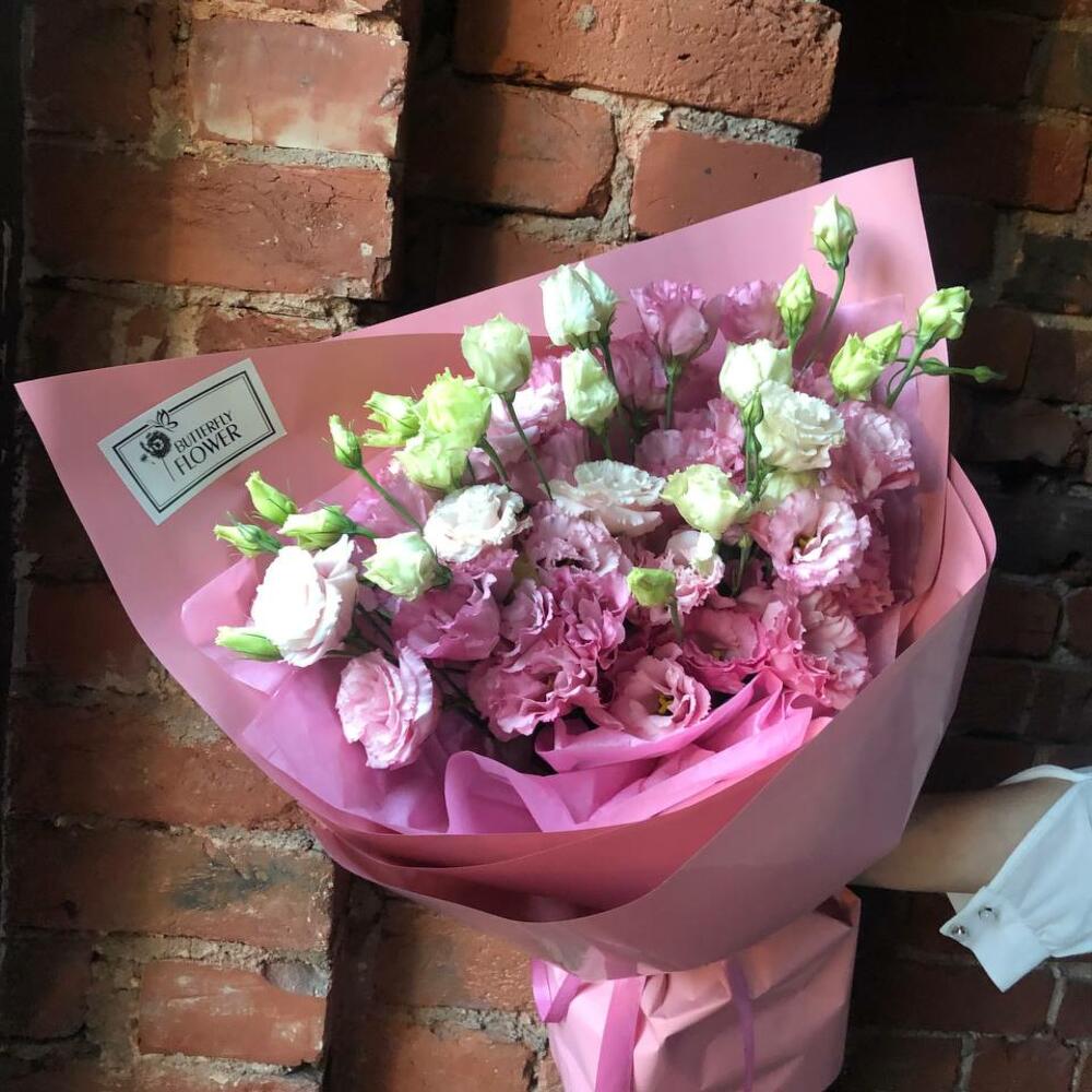 Букет из 17 розовых эустом (лизиантусов) в стильной упаковке “Шпицберген”