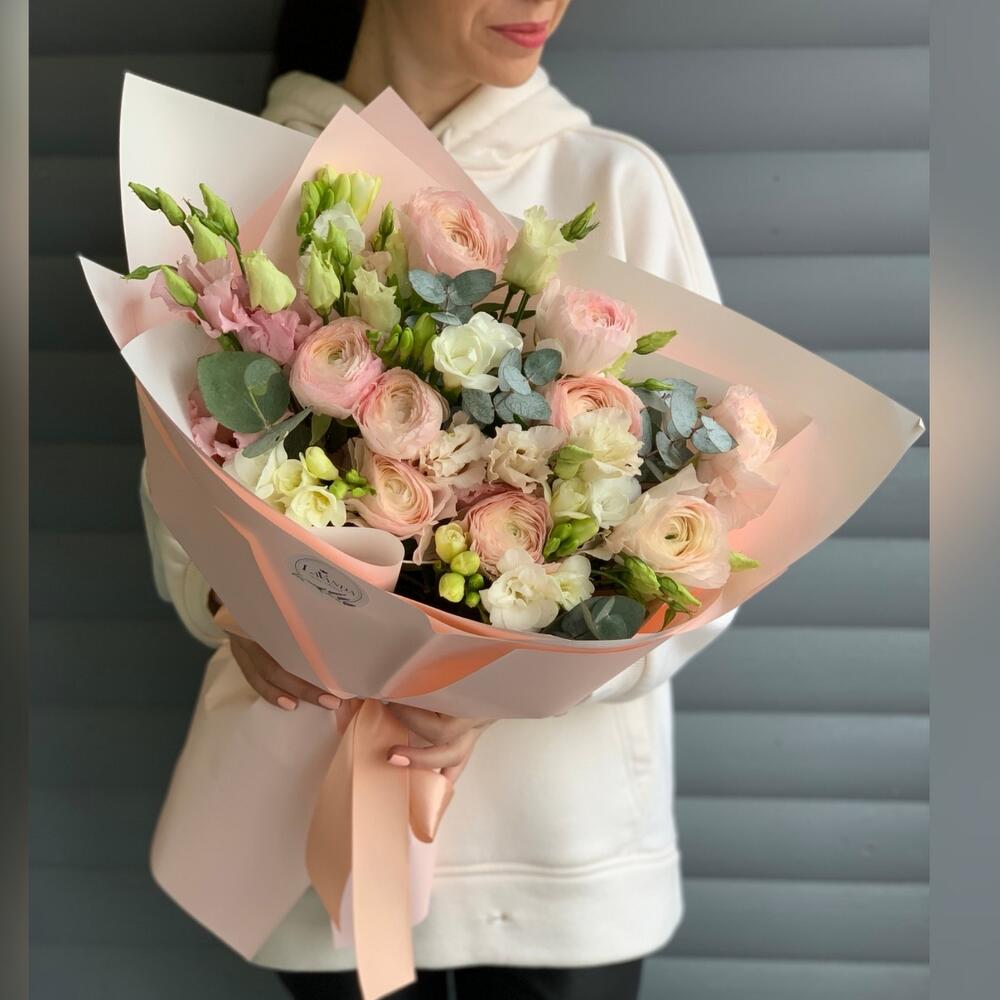 Гвоздики, Кустовые розы, Лизиантусы, Пионовидные розы, Розы