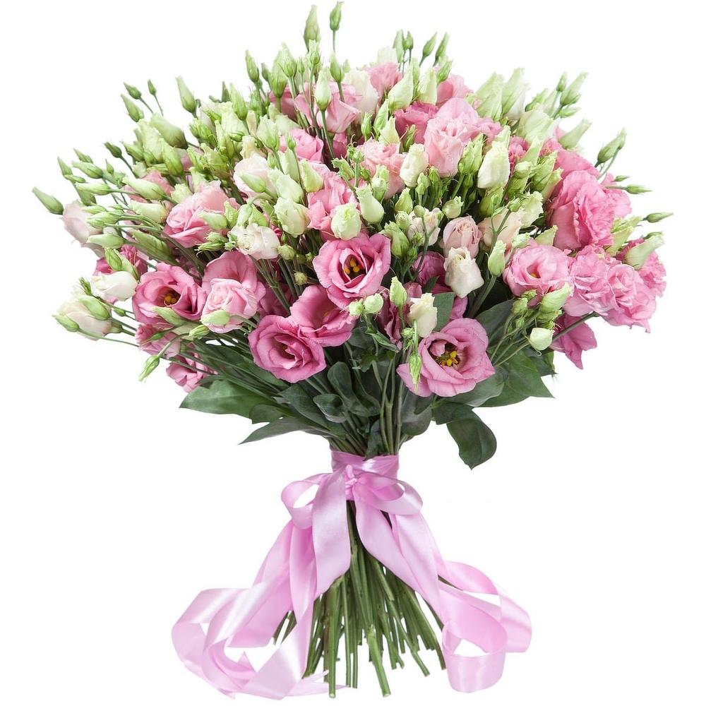 Лента атласная – 1 шт.эустома розовая – 9 шт.