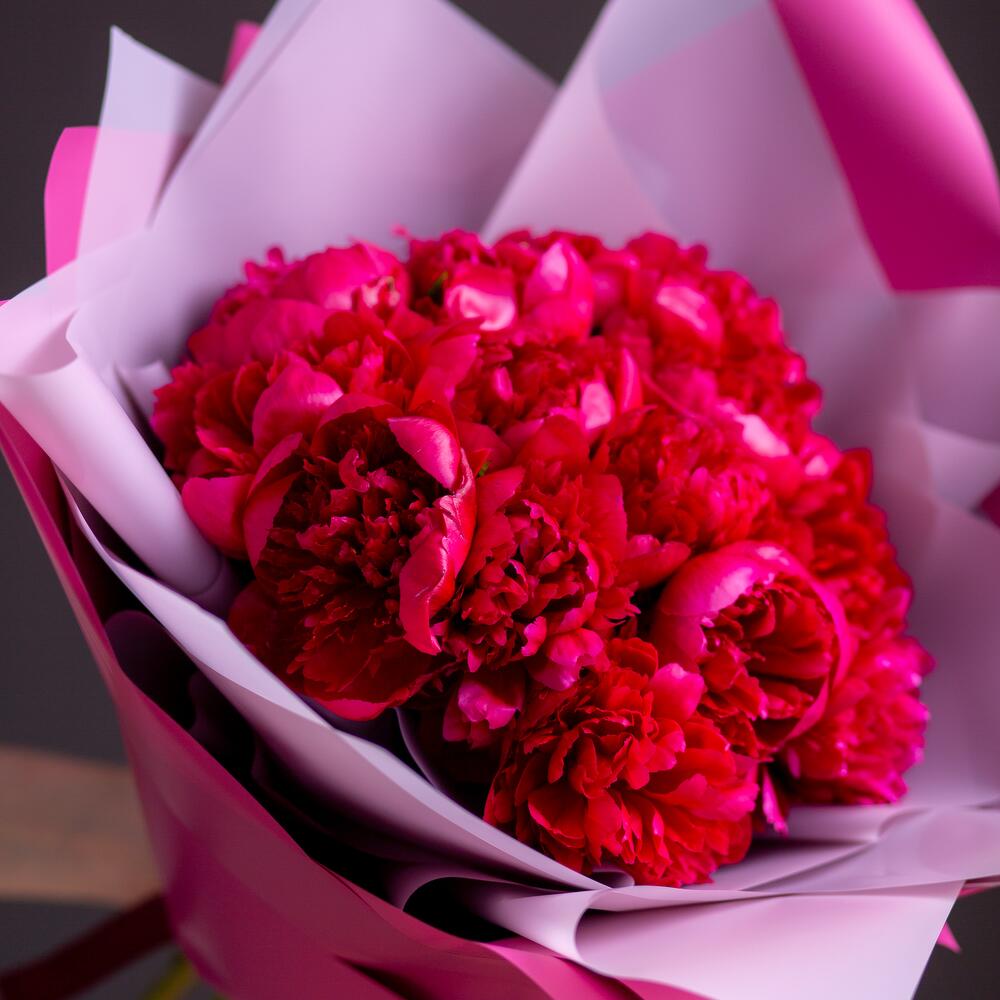 пион red charm – 15 шт.Упаковка матовая – 2 шт.Лента атласная – 1 шт.