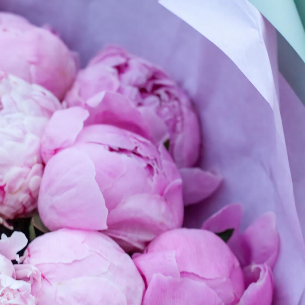 Лента атласная – 4 шт.Тишью – 4 шт.Упаковка дизайнерская – 1 шт.Пион розовый – 41 шт.Средство для продления жизни цветов – 2 шт.инструкция по уходу за цветами – 1 шт.