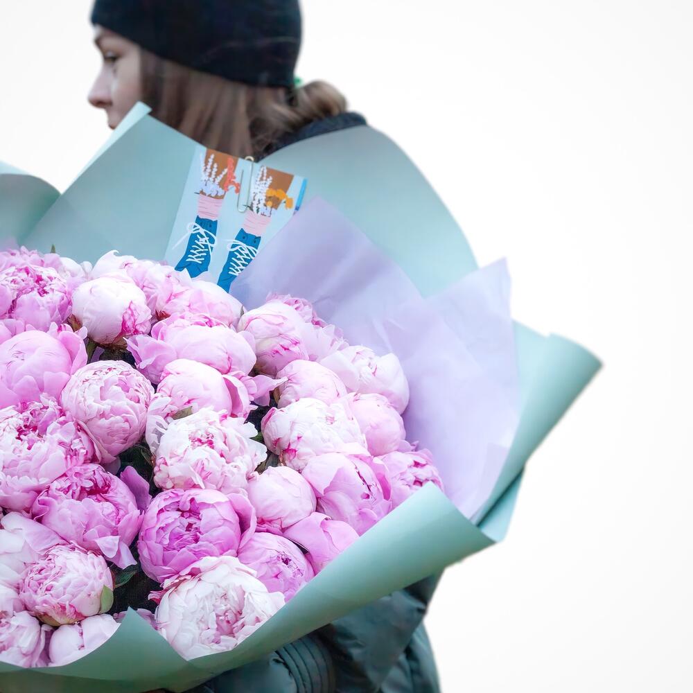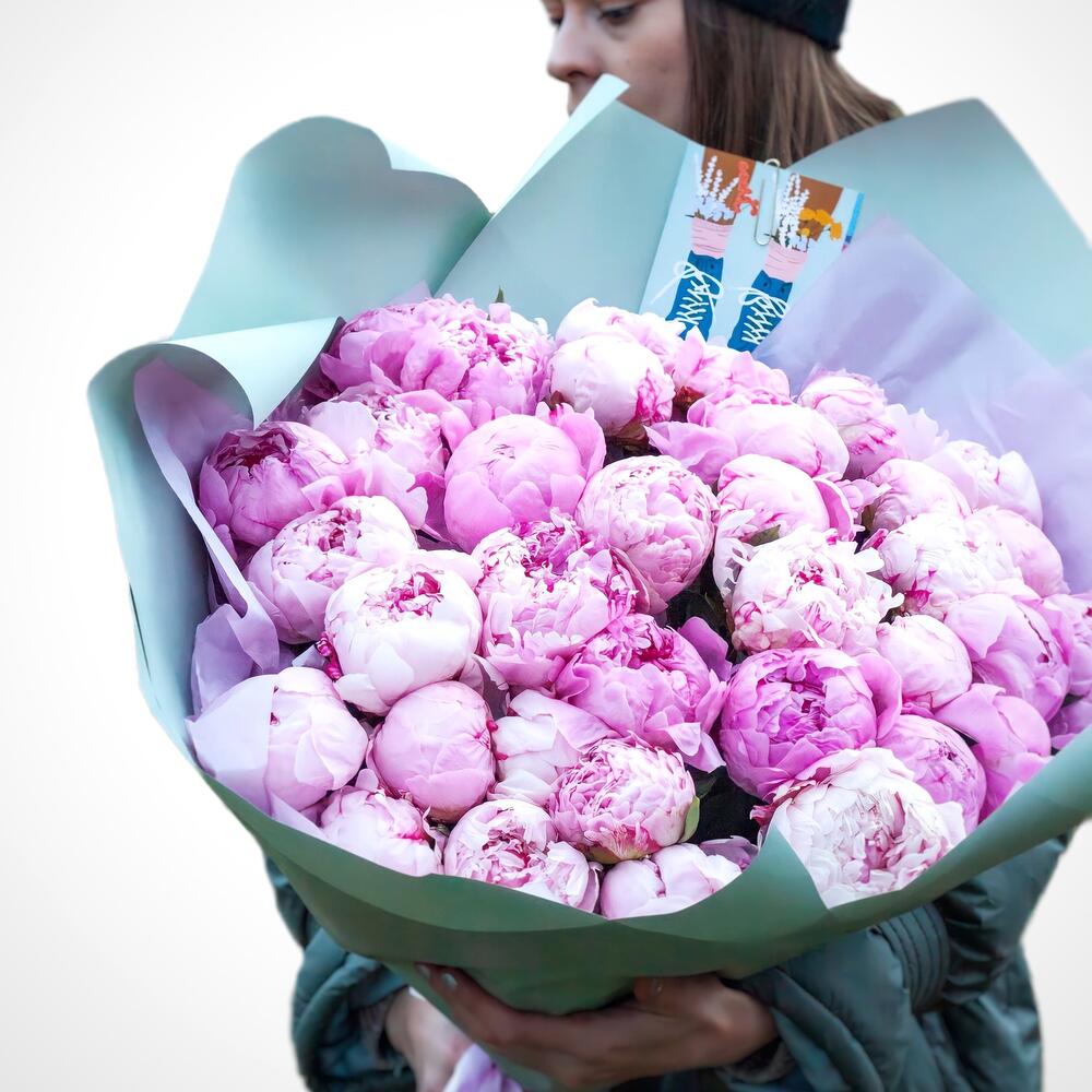Букет из 41 розового пиона
