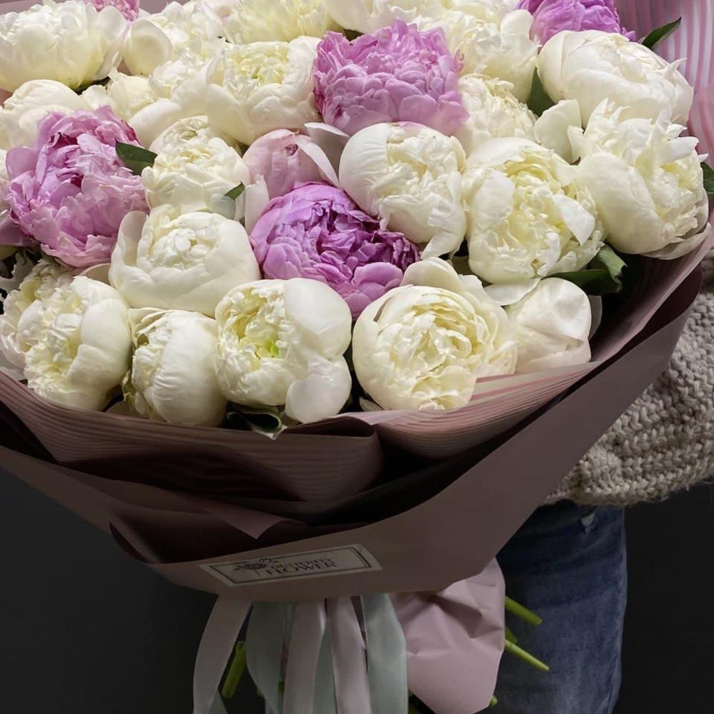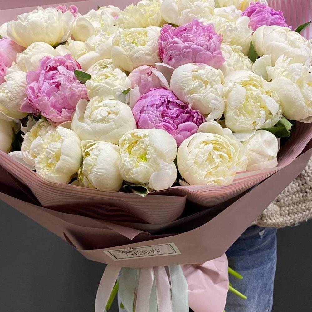 Букет из 45 пионов в стильной упаковке