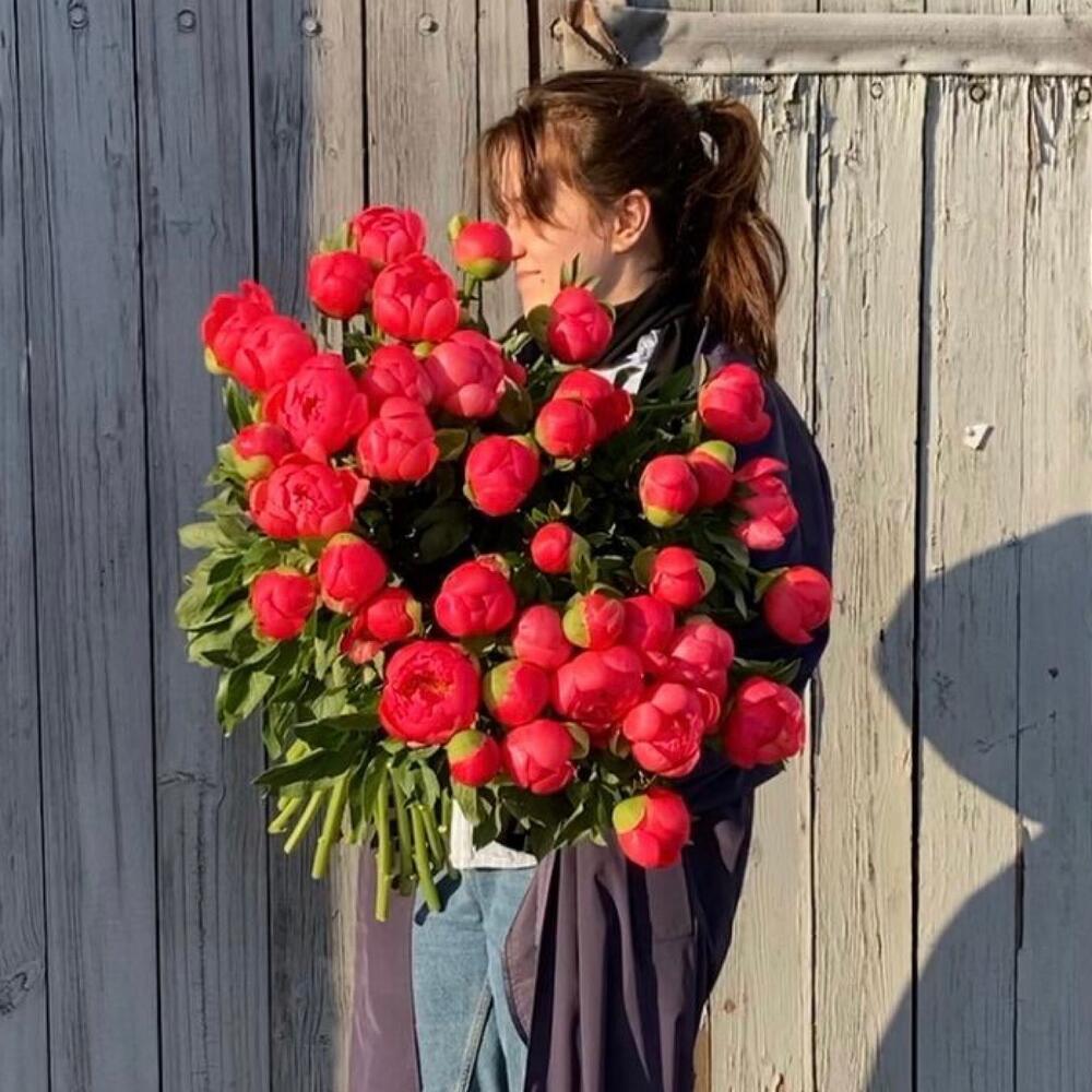 Великолепная охапка коралловых пионов.