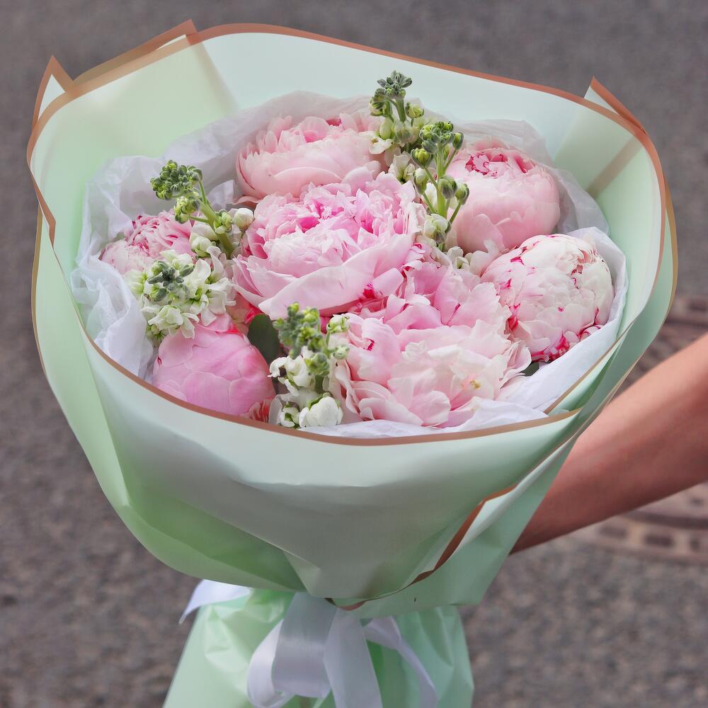Нежный, чувственный и воздушный букет, выполненный из сказочных пионов и маттиолы.Такой букет точно понравится яркой и энергичной получательнице, и будет долго радовать её.К букету прилагается открытка с вашими пожеланиями, инструкцию по уходу за цветами и приятный комплимент от нашего магазина – шоколадка.Мы также будем рады отправить вместе с букетом конфеты, шоколад ручной работы или б/а вино по вашим пожеланиям, просто напишите нам в личные сообщения. Заказывая наш букет, Вы всегда получите исключительный сервис и заботу о клиенте