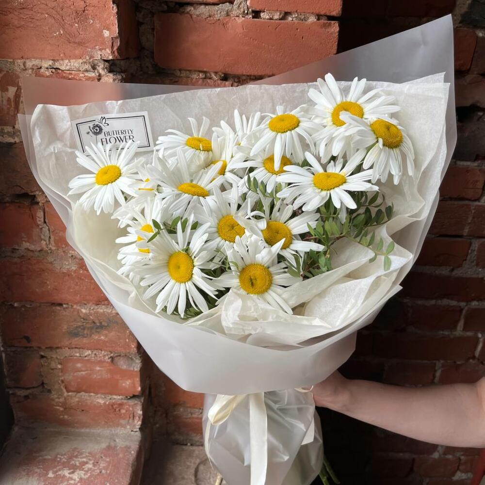 Букет из 15 садовых ромашек в стильной упаковке “Авирам”