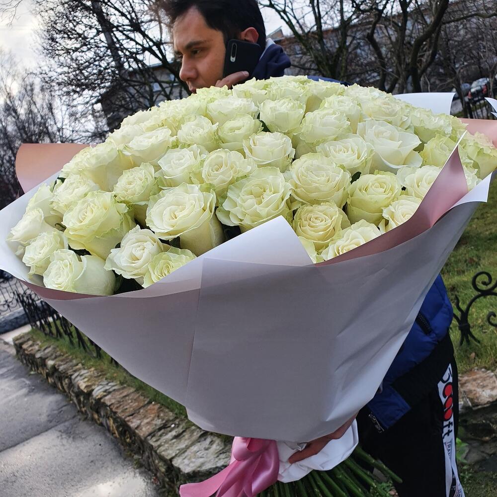 101 шт Шикарный букет белых роз