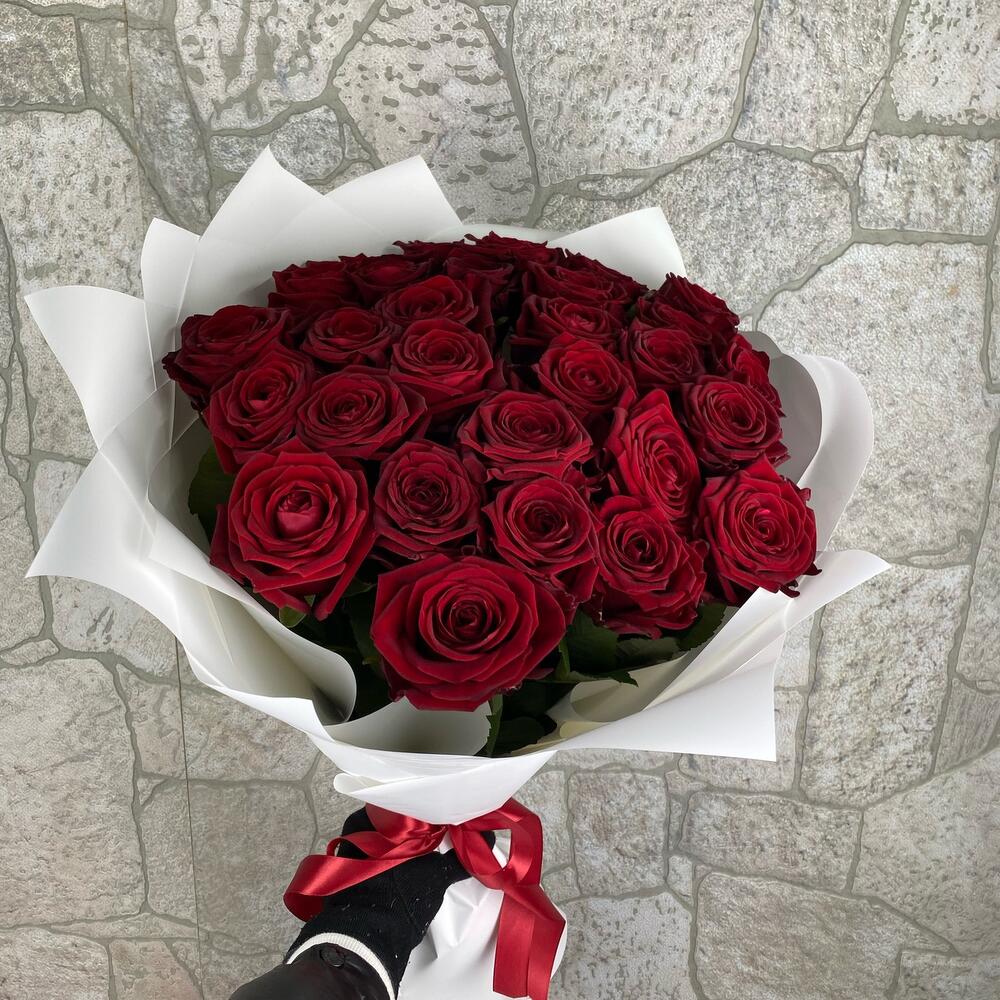 Роза 60 см – 35 шт.Упаковка – 3 шт.Атласная лента – 1 шт.