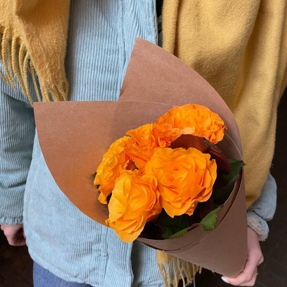 Крафтовая упаковка – 1 шт.роза оранжевая россия – 5 шт.