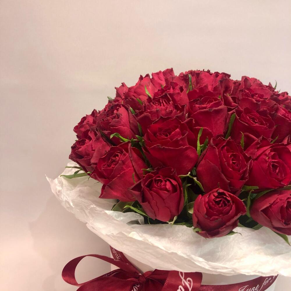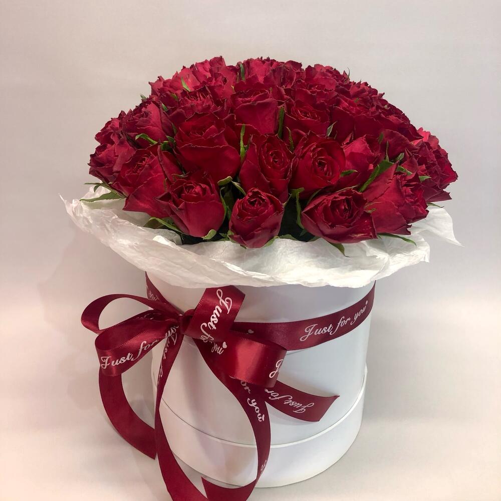 Роза красная Эквадор – 51 шт.Коробка шляпная – 1 шт.