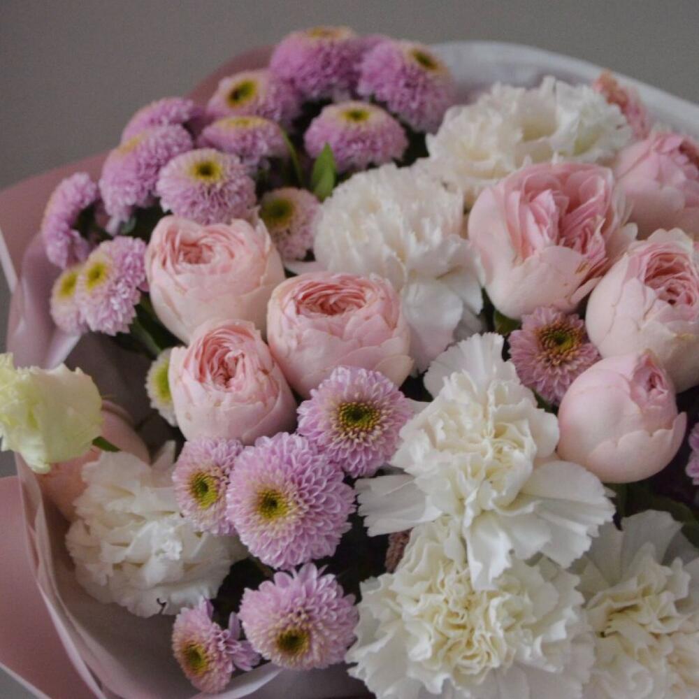Кустовые розы, Лизиантусы, Пионы, Розы, Хризантемы