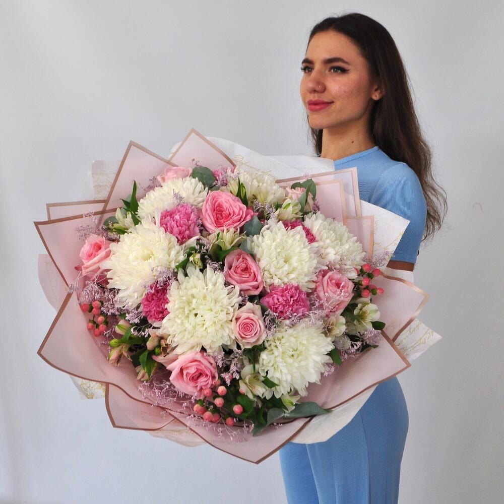 Категорий: Альстромерии, Гвоздики, Пионовидные розы, Розы, Хризантемы