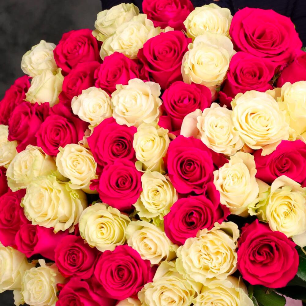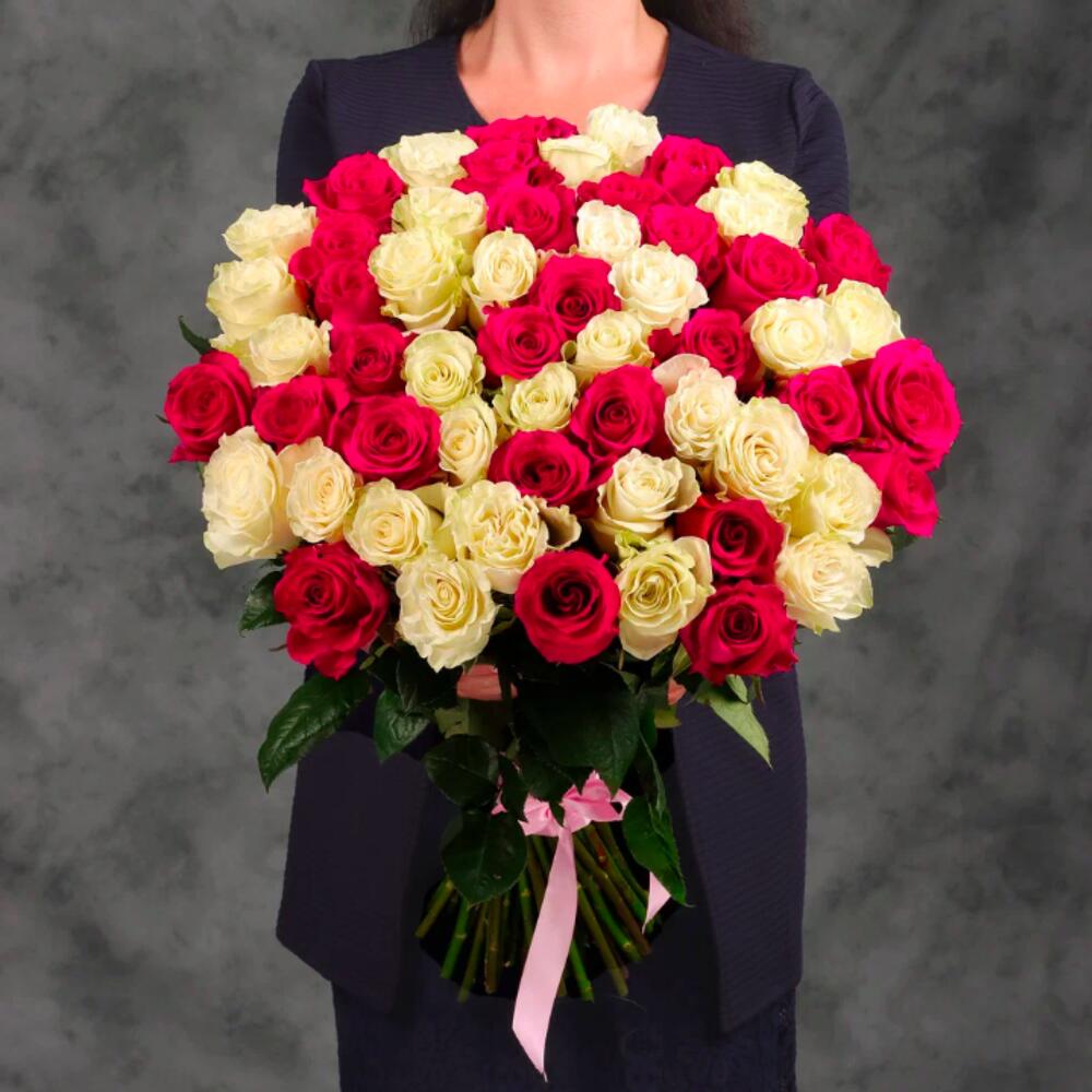 Букет 51 белая и розовая роза