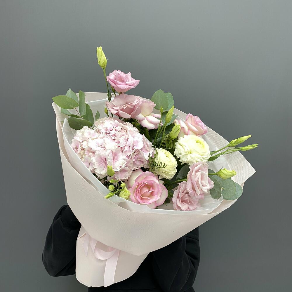 Альстромерии, Гвоздики, Кустовые розы, Лизиантусы, Розы, Хризантемы