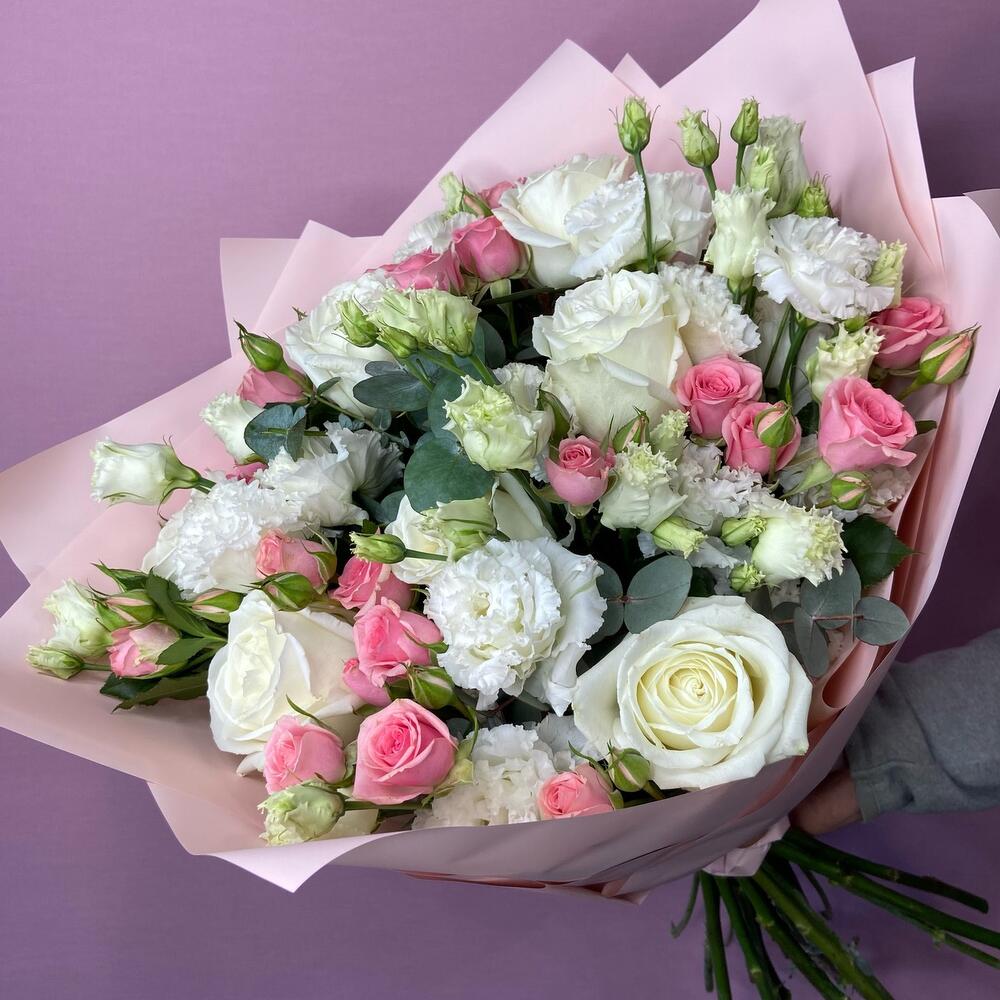 Гвоздики, Кустовые розы, Лизиантусы, Пионовидные розы, Розы