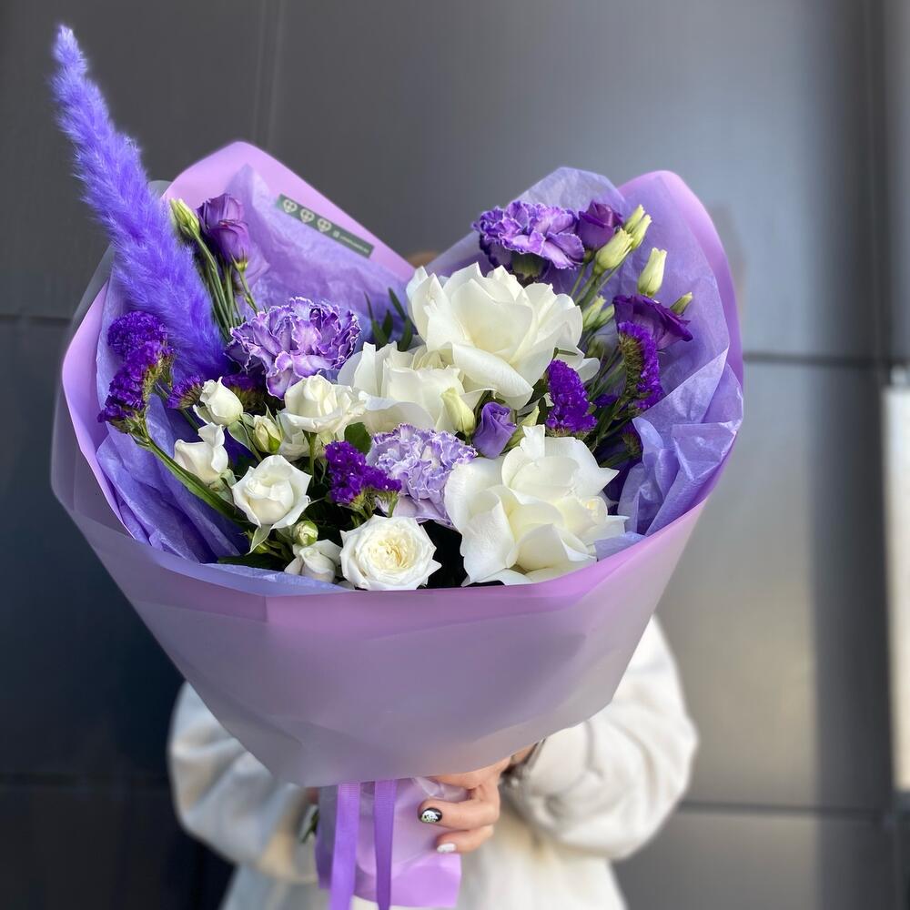 Букет фиолетовый с розами