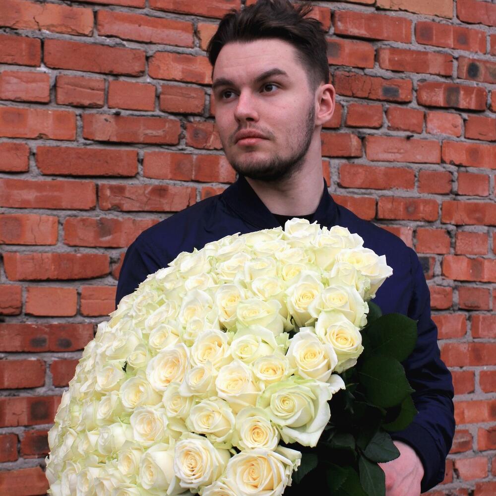 Роза белая – 101 шт.Лента атласная – 1 шт.