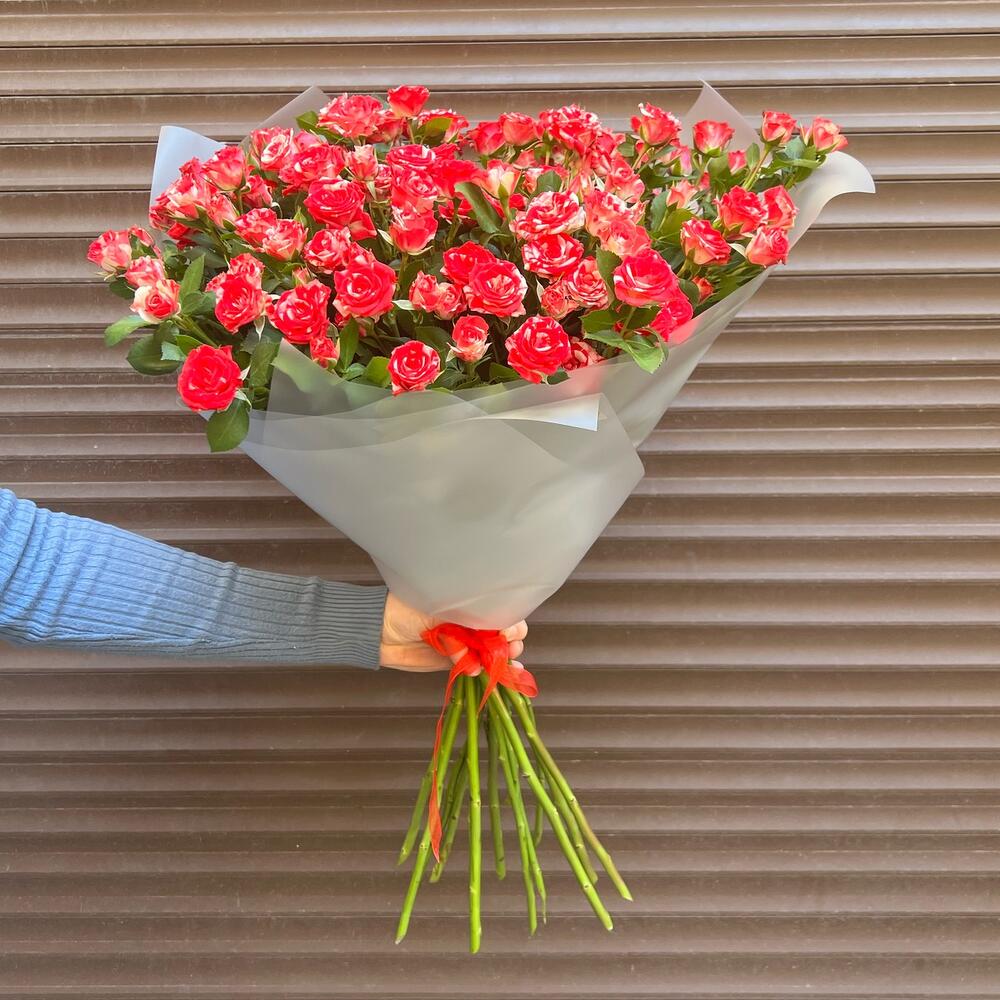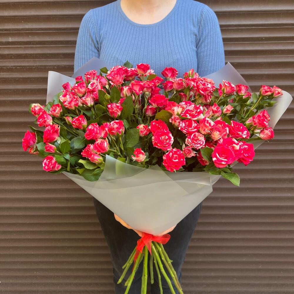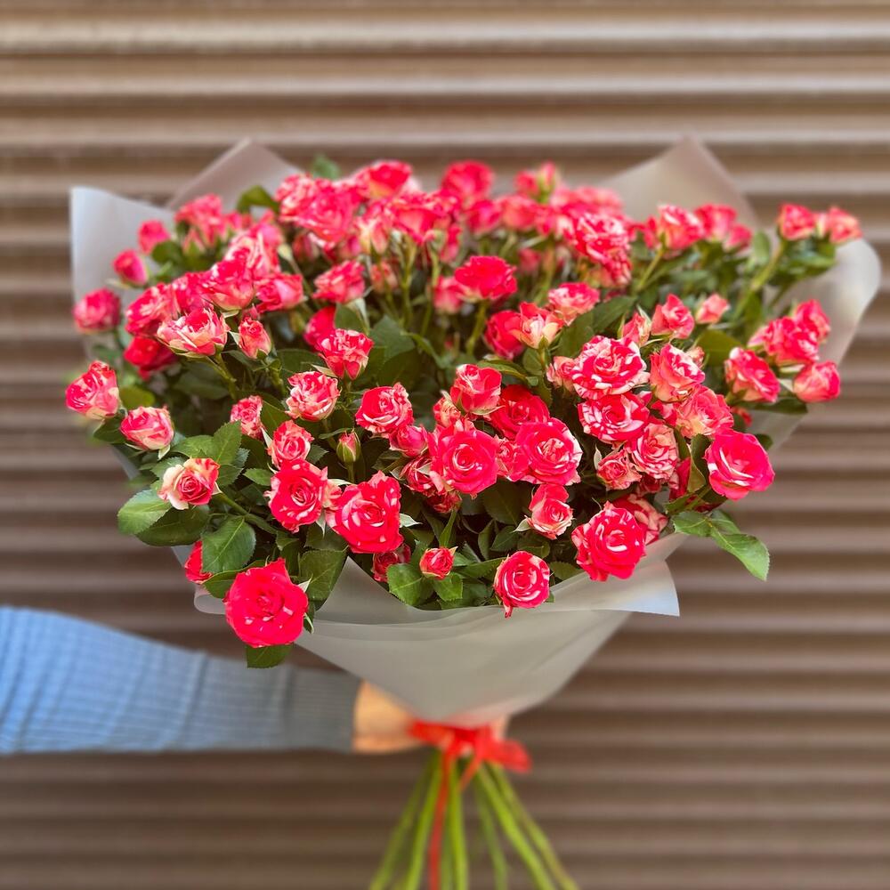 Букет из 15 ярких кустовых роз (моно 052)