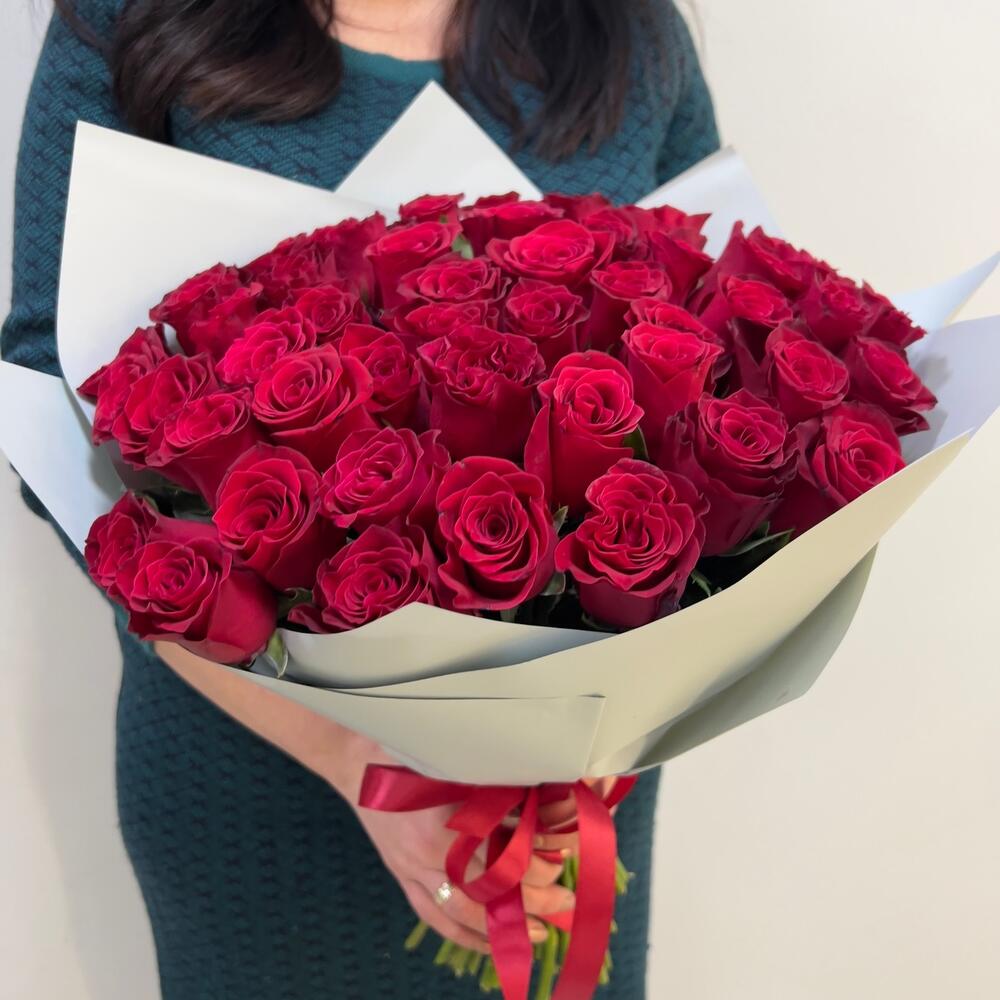 Букет из 55 красных роз 40 см