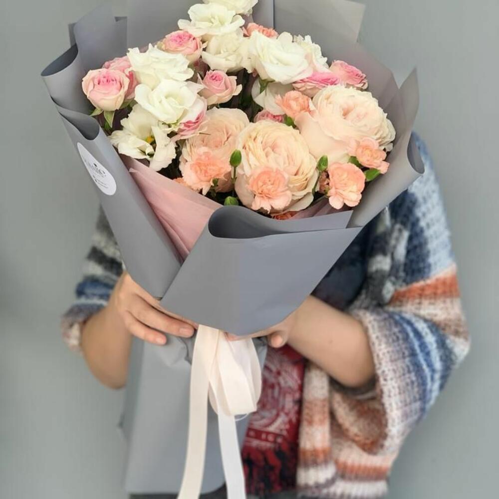 Гвоздики, Кустовые розы, Пионовидные розы, Розы