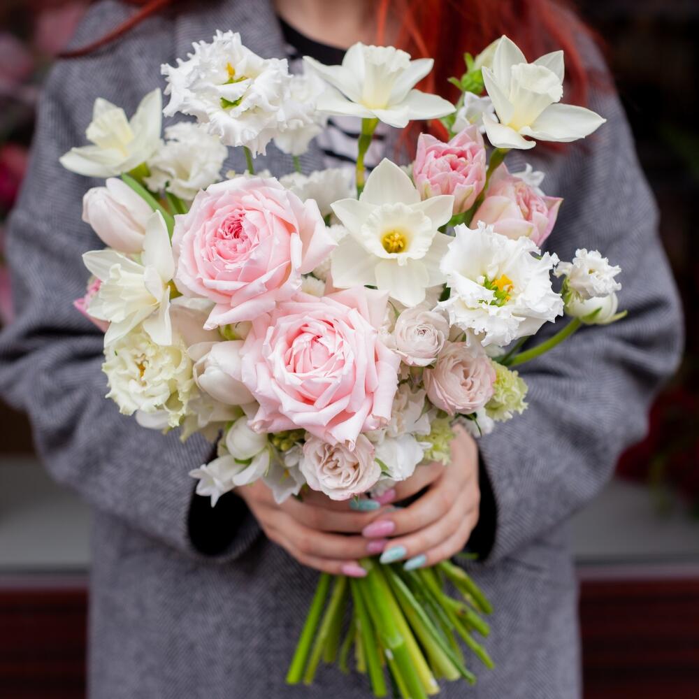 Категорий: Кустовые розы, Лизиантусы, Пионовидные розы, Розы, Тюльпаны
