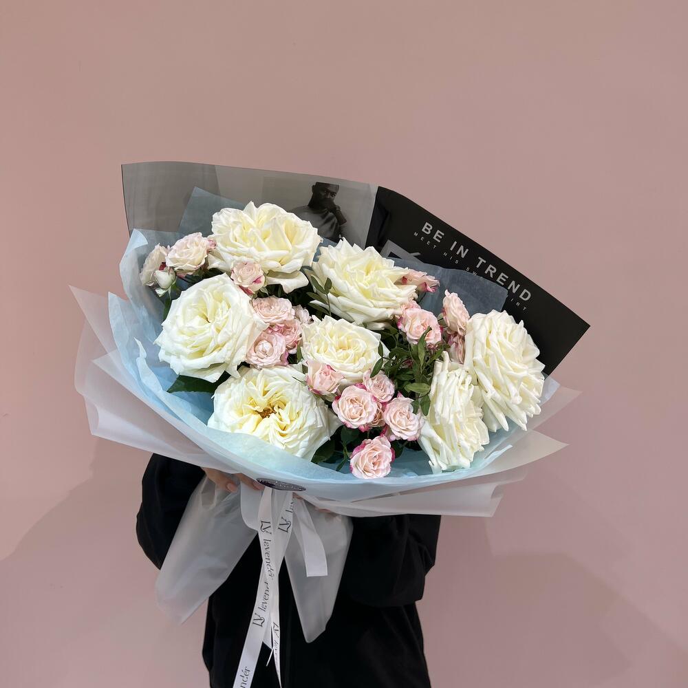 Гвоздики, Кустовые розы, Пионовидные розы, Розы