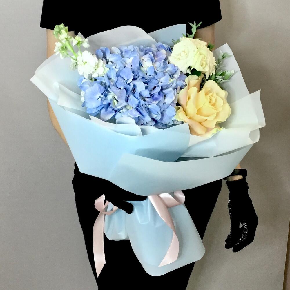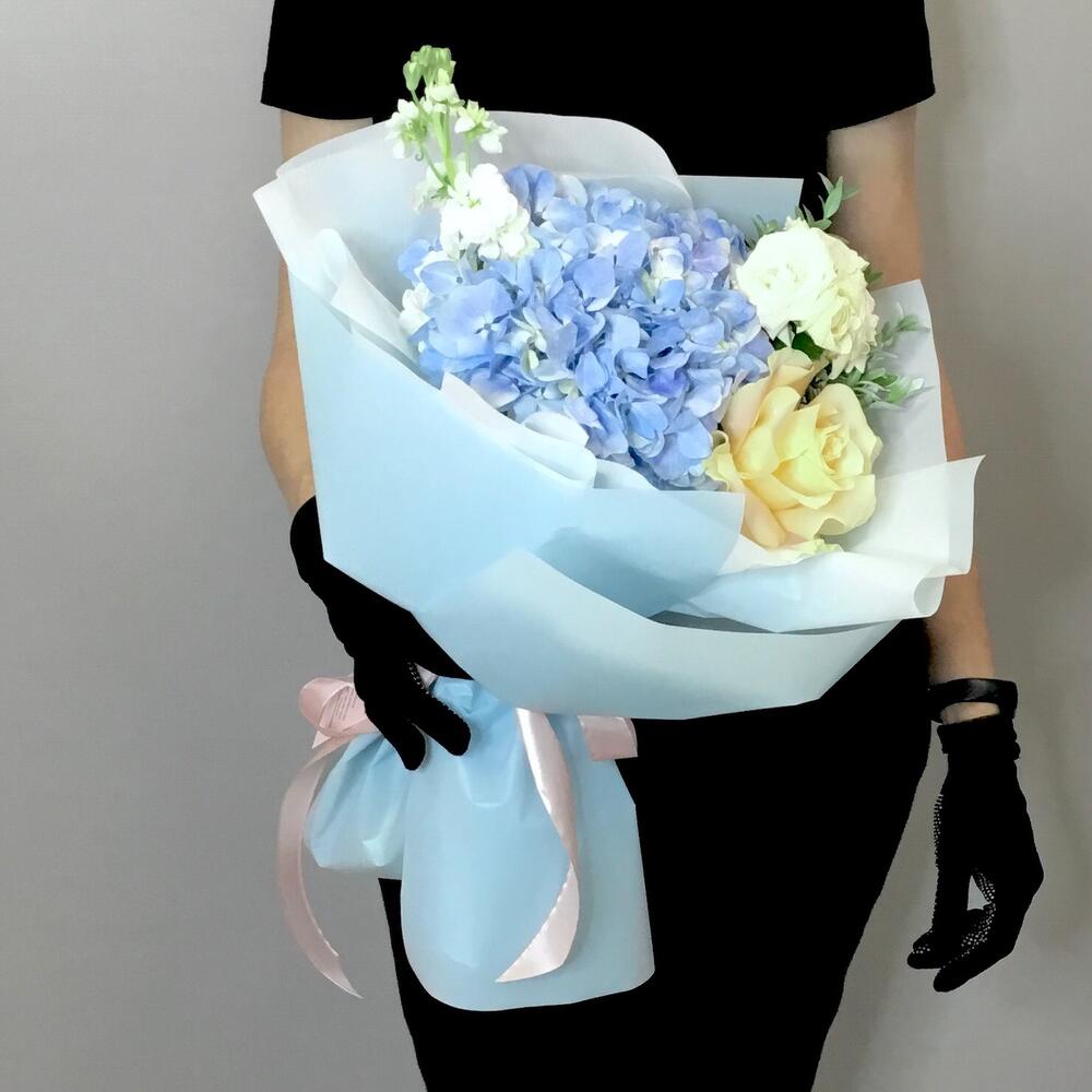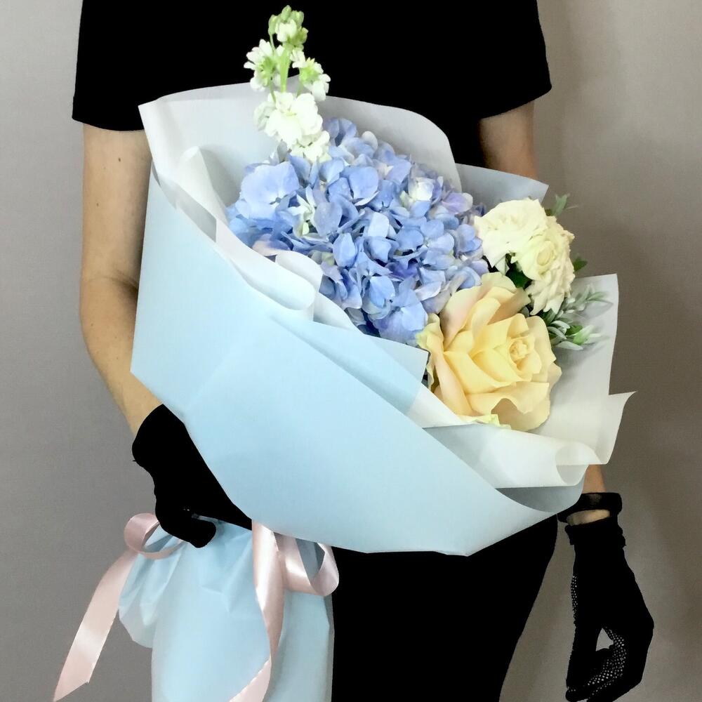 Букет с гортензией и розами «Янь»