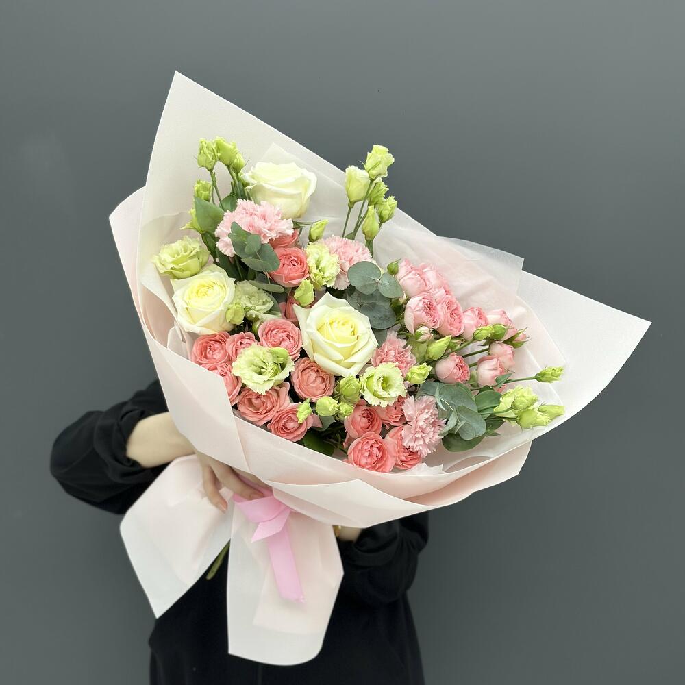 Гвоздики, Кустовые розы, Лизиантусы, Пионовидные розы, Розы