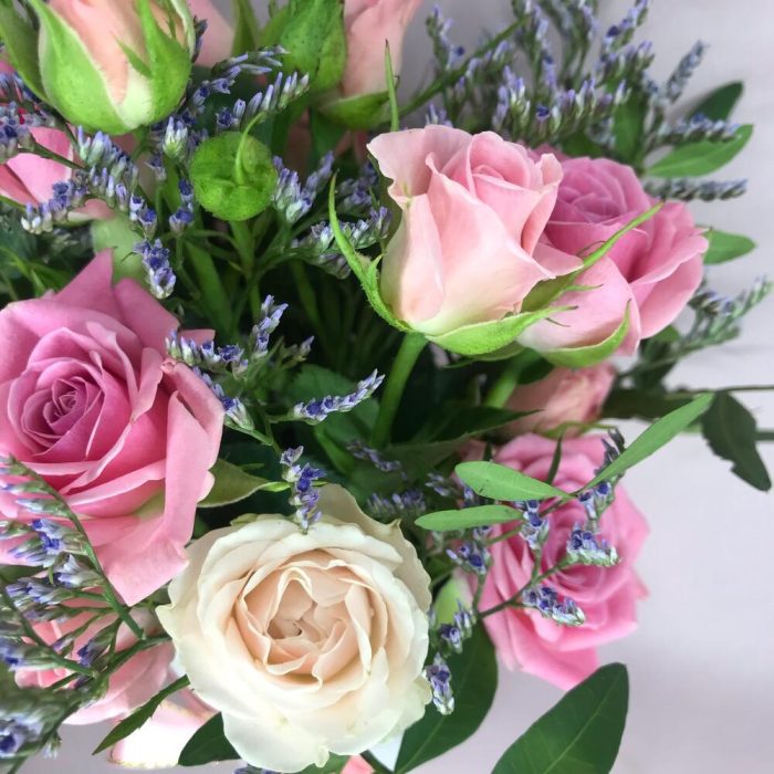 Цветочная композиция с нежными розами"Французский поцелуй"
