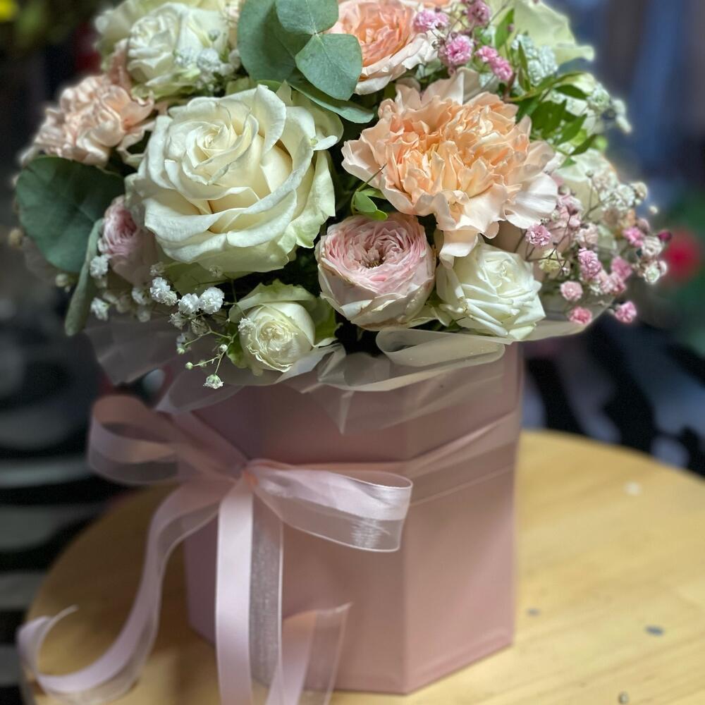 Гвоздики, Кустовые розы, Пионовидные розы, Розы